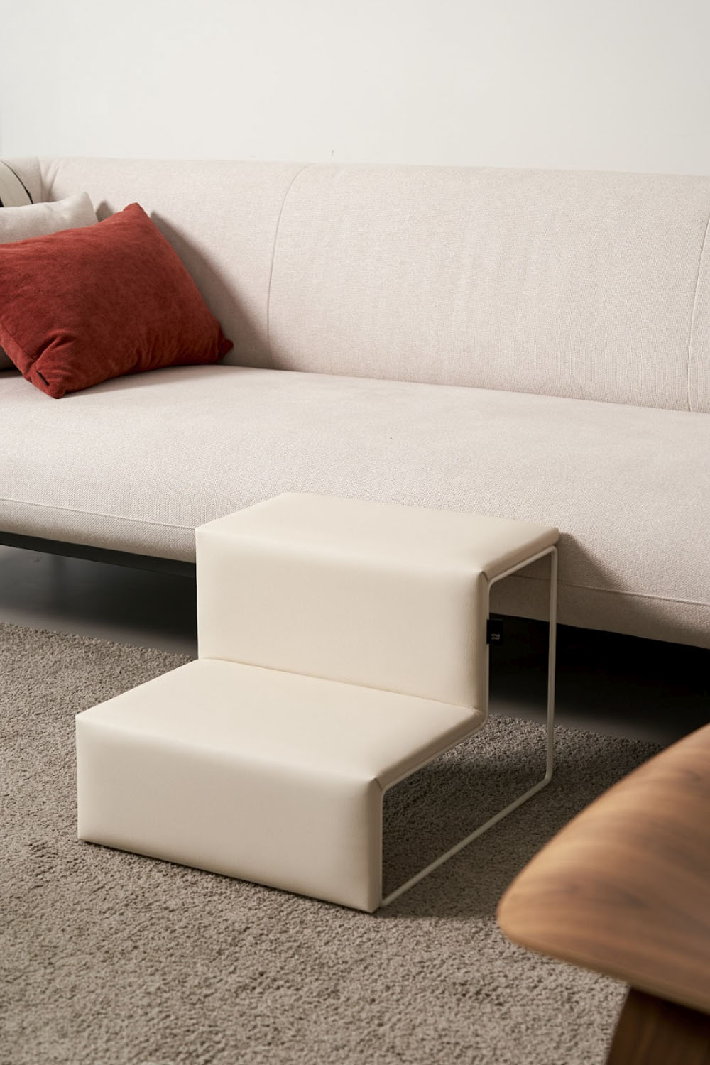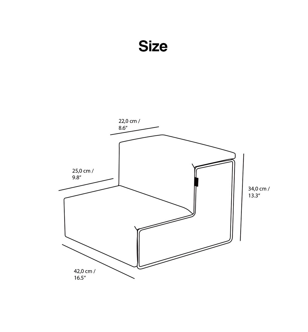 Designed as a functional yet aesthetic object, the Dig Step elevates your space with minimalist sophistication while providing your pet with a safe and stylish way to access sofas and beds.